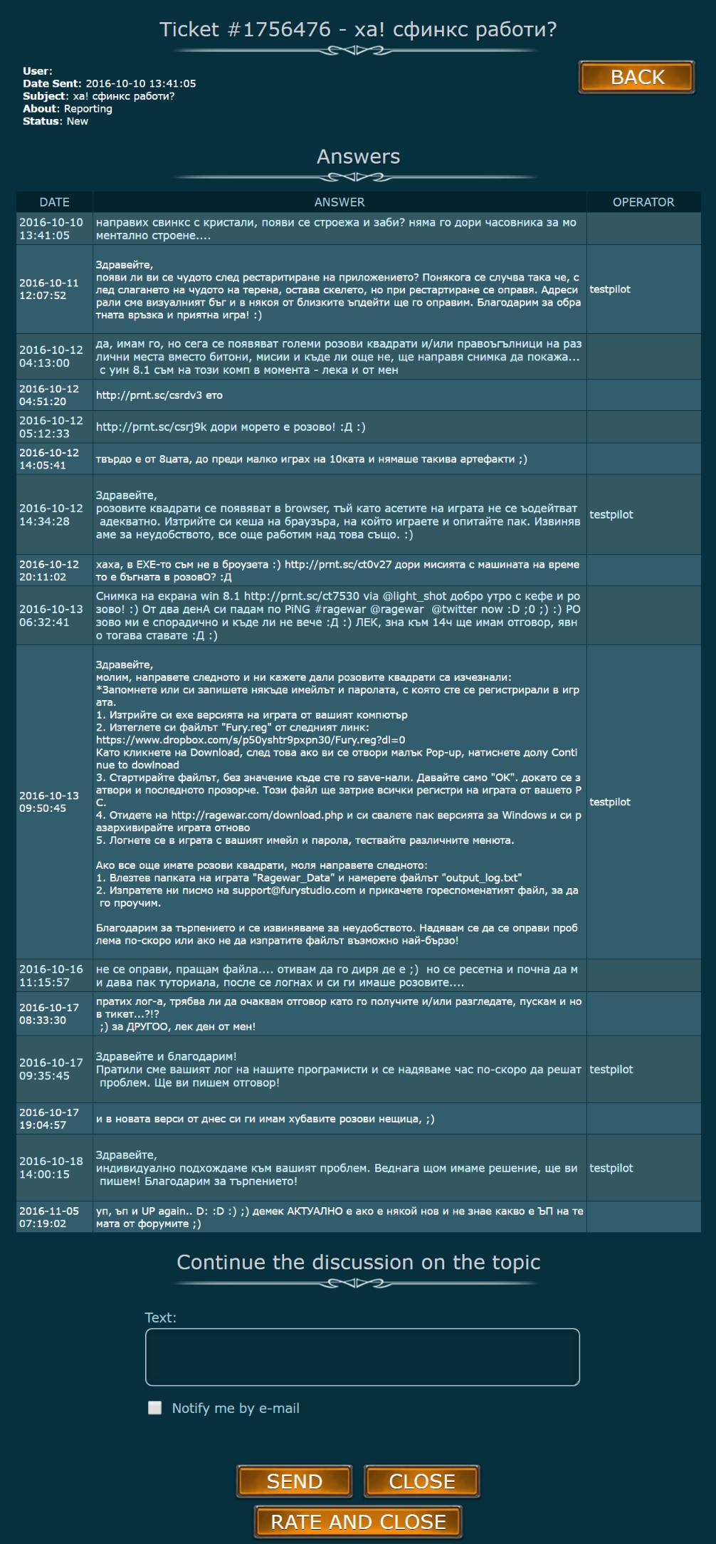 Надявам се да сте останал доволен от получената поддръжка. Ако по каквато и да е причина не сте удовлетворен, моля свържете се с нас възможно най-скоро.